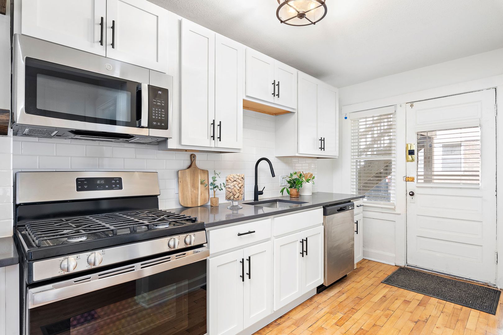 Each apartment has an oversized private balcony and is equipped with brand-new kitchen cabinets, quartz counters, stainless steel appliances, and a washer/dryer. The apartment features refinished hardwood floors, new windows, and a completely renovated bathroom with a clawfoot tub. Each apartment is Google Fiber ready. Off-street gated parking is also available for your convenience.